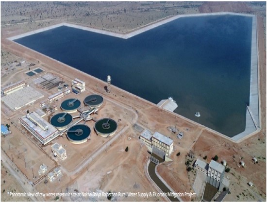 JICA has been continuously advocating and giving appropriate value-added assistance to the agencies concerned to attain protection of water resources by selecting technologies with smaller foot print. JICA assisted Rajasthan Rural Water Supply & Fluorosis Mitigation Project is located in an arid region of the Thar Desert and has a population of approximately 3.31 million. The raw water reservoir site at Nokha Daiya is an oasis in the middle of the Thar Deserts where during the summer the temperature during goes more than 50 degree. The micro climate in the region has changed, grassland in an around the reservoir due to increase soil moisture and various flora and fauna restoring the desert ecosystem and bio diversity. In the recent times the raw water reservoir area is the home for the migrated Mongolian and Siberian Crane during winter times. The project has not only providing the safe drinking water to the inhabitants of the desert region and restoring the desert ecosystem.