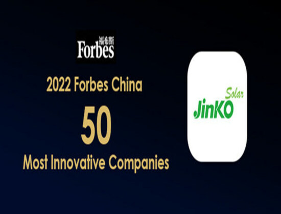 JinkoSolar announced it was named as the top 50 Forbes China Most Innovative Companies 2022, reaffirming its continuous innovation and achievements.