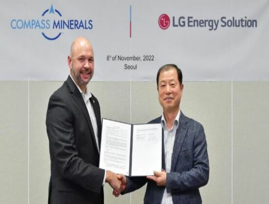 LG Energy Solution signed a binding offtake agreement this week on the purchase of battery-grade lithium carbonate with Compass Minerals, a U.S. producer of essential minerals, to sustainably enhance the stability of its critical mineral supply chain.
