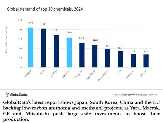 GlobalData’s Strategic Intelligence report, “Ammonia and Methanol in Energy Transition” reveals that countries such as Japan, South Korea, China and members of the European Union (EU) are backing low-carbon projects, while companies including Yara, Maersk, CF and Mitsubishi are exploring large-scale investments to boost their production.