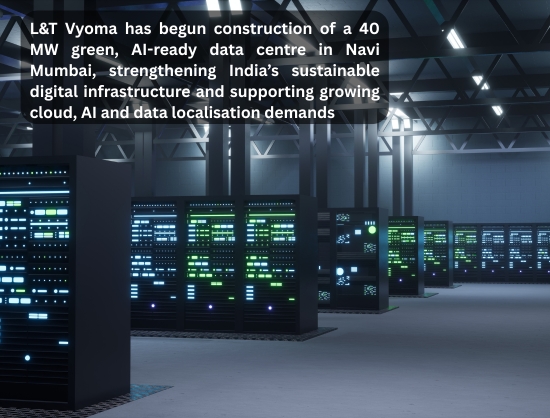 L&T Vyoma has commenced construction of a 40 MW green, AI-ready data centre in Navi Mumbai, strengthening India’s sustainable digital infrastructure and supporting cloud, AI and data localisation needs.