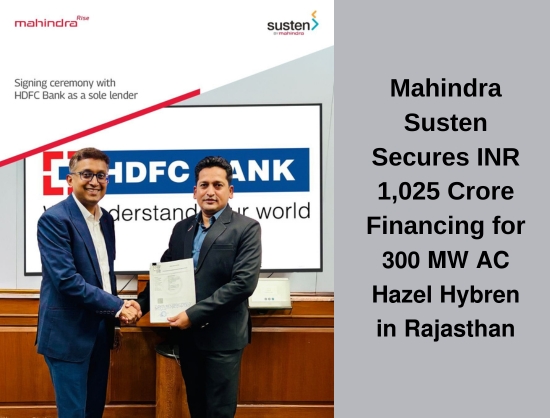 Mahindra Susten secures INR 1,025 crore financing from HDFC Bank for 300 MW Hazel Hybren Project in Rajasthan with NHPC as off-taker.