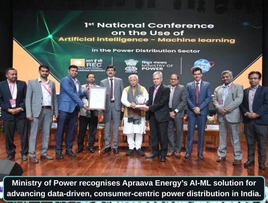Apraava Energy has received national recognition for its AI and ML solution at the Ministry of Power’s National Conference under the RDSS, earning the runner-up award for advancing data-driven, consumer-centric power distribution, presented by Union Minister Manohar Lal Khattar.