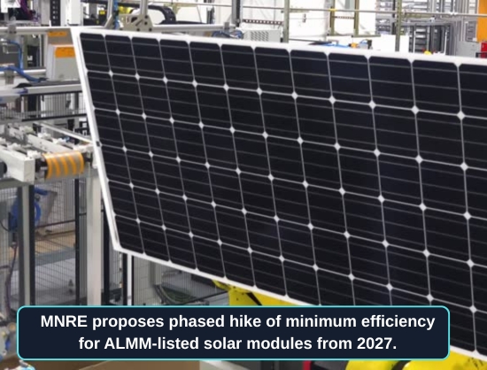 The Ministry of New and Renewable Energy has proposed raising ALMM module efficiency thresholds by one percent from January 1, 2027 and by an additional 0.5 percent from January 1, 2028 to drive adoption of higher-efficiency solar technologies.