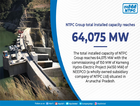 NTPC Ltd, India’s largest energy integrated company crossed 64,000 MW. The company commenced commercial operations for the Kameng Hydro-Electric Project, a part North Eastern Electric Power Corporation Ltd (a wholly-owned subsidiary company of NTPC Ltd), effective on February 12, 2021.