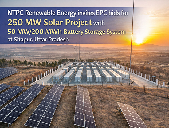NTPC Renewable Energy has issued an EPC tender for developing a 250 MW solar PV project integrated with a 50 MW/200 MWh battery energy storage system (BESS) at Sitapur in Uttar Pradesh. Bid submission ends on February 6, 2026.