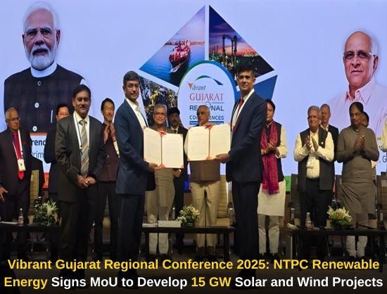 NTPC Renewable Energy (NTPC REL), a subsidiary of NTPC Green Energy (NGEL), has signed an MoU with the Government of Gujarat to develop 15 GW of solar and wind power projects in the state, at the Vibrant Gujarat Regional Conference 2025, held at Mehsana, Gujarat.