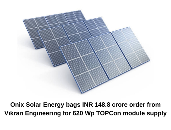 Onix Solar Energy has secured an INR 148.80 crore LoI from Vikran Engineering to supply Non-DCR TOPCon 620 Wp solar modules.