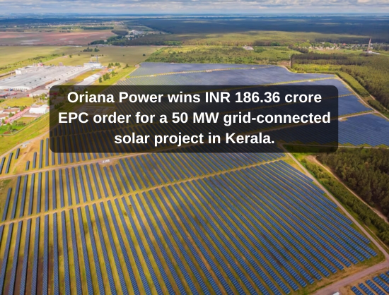 Renewable Energy EPC company Oriana Power has announced that the company has received purchase orders (POs) worth about INR 186.36 crore from a renewable energy developer for setting up a 50 MW (AC) grid-interactive solar PV power project in Kerala.
