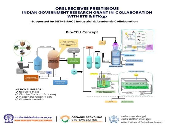 Mumbai-based Organic Recycling Systems Ltd. (ORSL), in partnership with IIT Bombay (IITB) and IIT Kharagpur (IITKgp), has secured a research grant under the DBT-BIRAC Joint Call on Carbon Capture and Utilisation (CCU).
