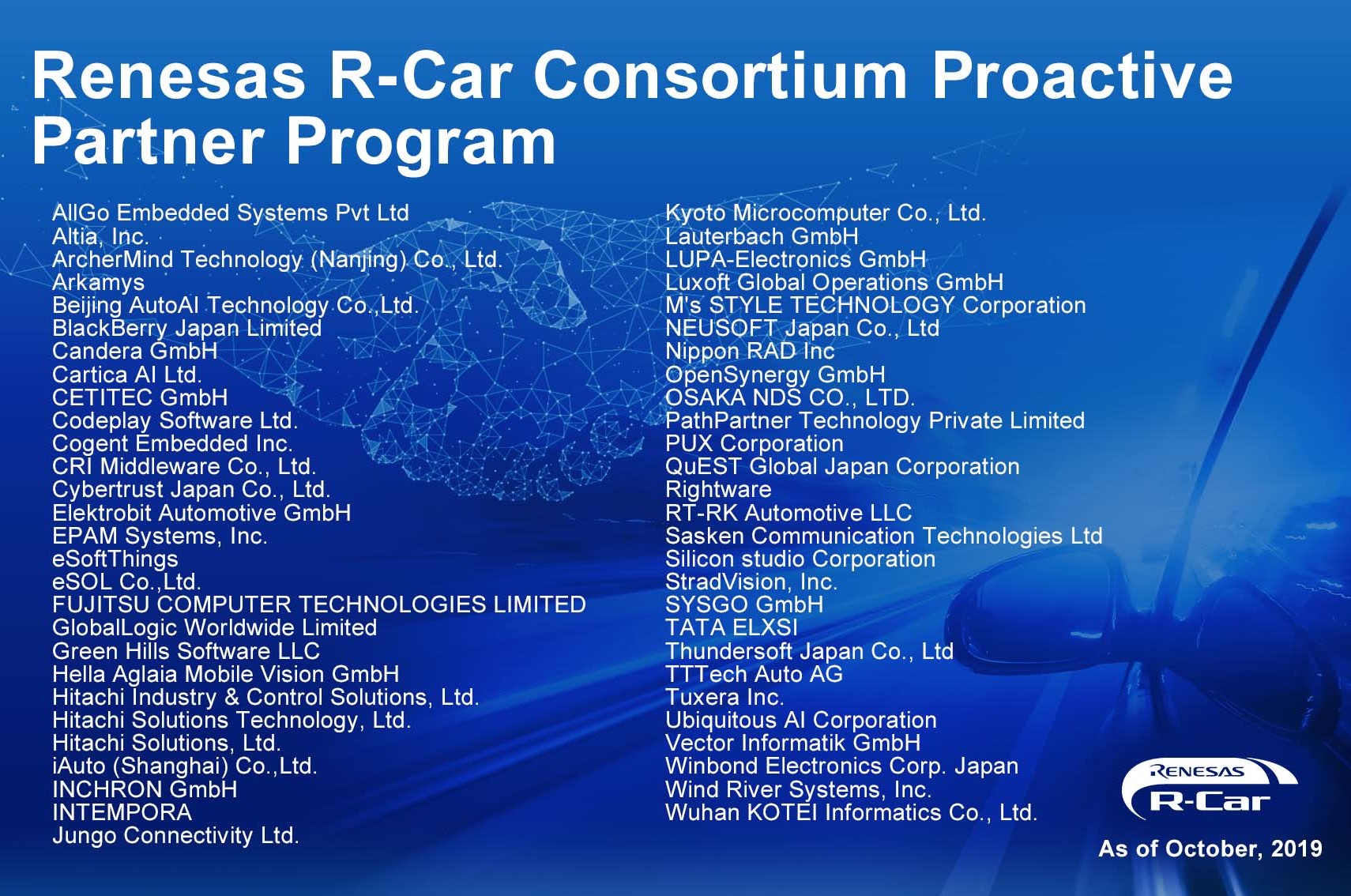 Renesas Electronics Introduces R-Car Consortium Proactive Partner Program