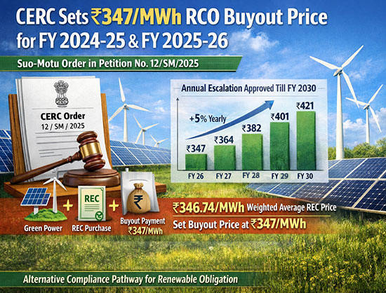 The Central Electricity Regulatory Commission has fixed the RCO buyout price at INR 347/MWh for FY25–FY26, based on an INR 346.74/MWh weighted average...
