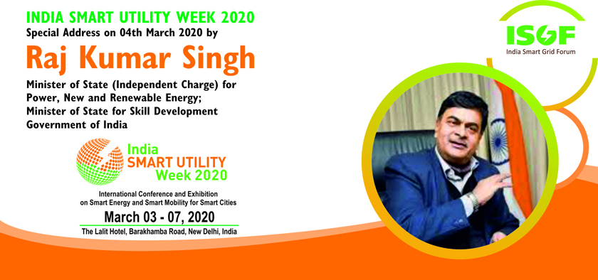 Honourable Minister RK Singh will speak at the Special Plenary Session on Regulations Enabling Energy Transition Scheduled on 04 March 2020 at India Smart Utility Week 2020.