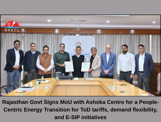 The Energy Department, Government of Rajasthan, has signed an MoU with the Ashoka Centre for a People-Centric Energy Transition through the International Foundation for Research and Education to advance a people-centric clean energy transition, focusing on ToD tariffs, demand-side management, and Energy-SIP and storage initiatives.