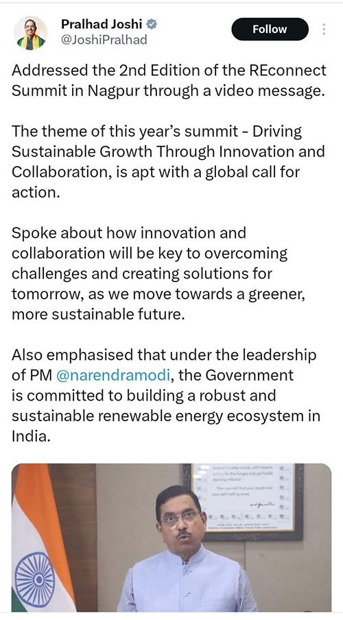 REconnect Nagpur’s Theme is Apt with Global Call for Action: MNRE Minister Pralhad Joshi