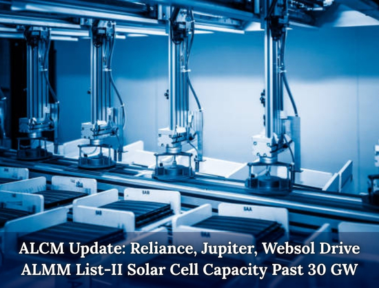 Reliance has entered the ALMM List-II for solar PV cells by adding 1,238 MW of HJT solar cell capacity, while Jupiter International has added 991 MW of Mono PERC capacity from its new plant in Himachal Pradesh. Websol has enhanced its capacity by 600 MW to reach 1,202 MW. Total enlisted capacity in ALMM List-II has increased to 30,056 MW.