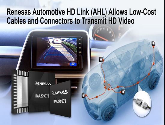 Renesas Electronics Corporation has introduced its new Automotive HD Link (AHL) technology that enables automotive manufacturers to deliver high-definition video over low-cost cables and connectors that currently support standard-definition video.