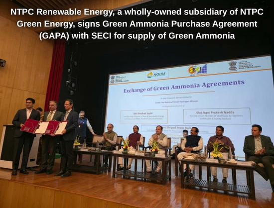 NTPC Renewable Energy has signed a Green Ammonia Purchase Agreement with Solar Energy Corporation of India to supply 70,000 MTPA of green ammonia to Krishna...