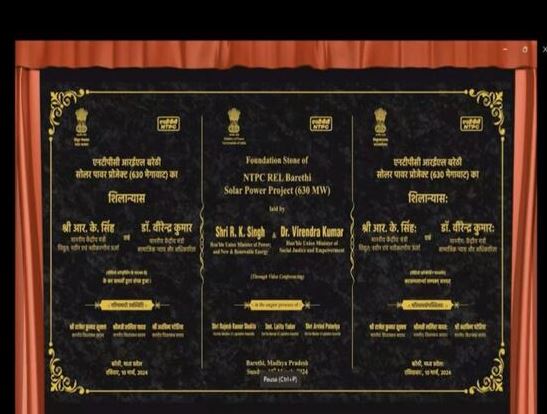Hon'ble Minister of Power and New & Renewable Energy, R K Singh and Hon’ble Minister of Social Justice and Empowerment, Dr. Virendra Kumar together laid the foundation stone for Barethi Solar Power Project of NTPC REL in Madhya Pradesh on 10th March, 2024.