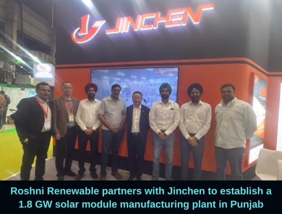 Roshni Renewable has announced plans to set up a 1.8 GW solar module manufacturing plant in Punjab in partnership with Jinchen. The partnership with Jinchen was formalised at the REI Expo 2025.