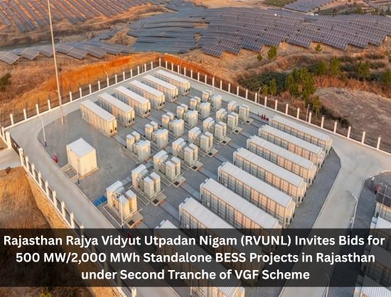 RVUNL Invites Bids for 500 MW/2,000 MWh Standalone BESS Projects in Rajasthan
