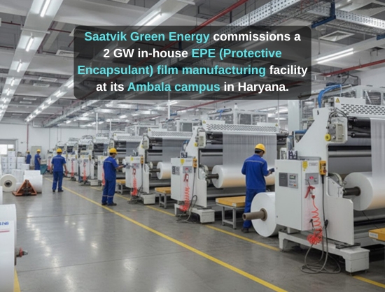 Saatvik Green Energy (SGEL) has announced that the company has successfully commissioned and operationalised a 2 GW in-house EPE (Protective Encapsulant) film manufacturing facility at its Ambala campus in Haryana.