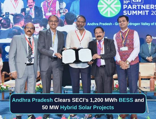 The Government of Andhra Pradesh has formally issued Government Orders (GOs) to Solar Energy Corporation of India (SECI) for two major clean-energy initiatives — the 1,200 MWh Nandyala Battery Energy Storage System (BESS) project and a 50 MW hybrid solar power project.