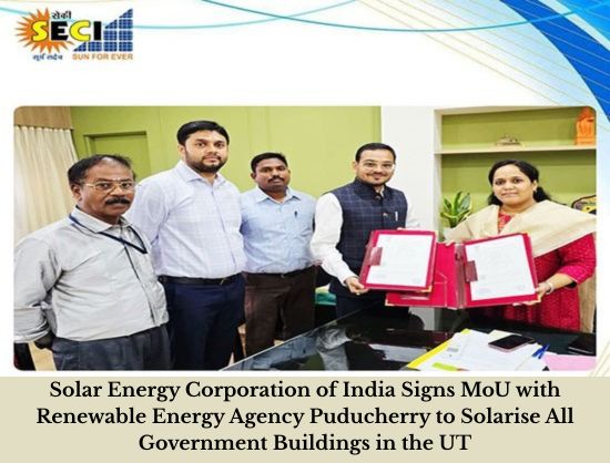 Solar Energy Corporation of India (SECI) has signed an MoU with the Renewable Energy Agency Puducherry to solarise all government buildings in the Union Territory.