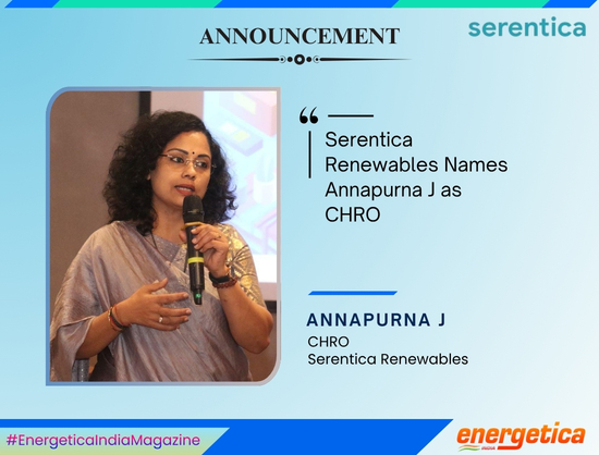 Serentica Renewables, a renewable energy provider in India, has announced the appointment of Annapurna J as Chief Human Resources Officer (CHRO). In this role, she will report to the group CHRO and will be based out of the company’s Mumbai office.