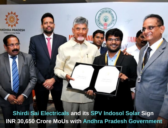 Shirdi Sai Electricals and its subsidiary Indosol Solar have signed three MoUs worth about INR 30,650 crore with the Andhra Pradesh government, spanning major clean energy and infrastructure projects.