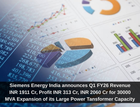 Siemens Energy India reported 26 percent revenue growth and 34.9 percent rise in profit for Q1 FY26,and approved INR 2,060 crore investment to expand large power transformer capacity by 30,000 MVA.