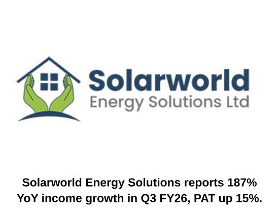 Solarworld Energy Solutions reported 187 percent YoY growth in Q3 FY26 income to INR 5,878 million and a 15 percent rise in PAT to INR 592 million, backed by an INR 26,220.9 million order book and strong EPC-led execution.