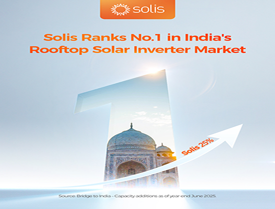 According to the CRISIL–Bridge to India Rooftop Map (June 2025), Solis has ranked as the No.1 inverter supplier by market share in India's rooftop solar segment, accounting for 25 percent of total deployments.