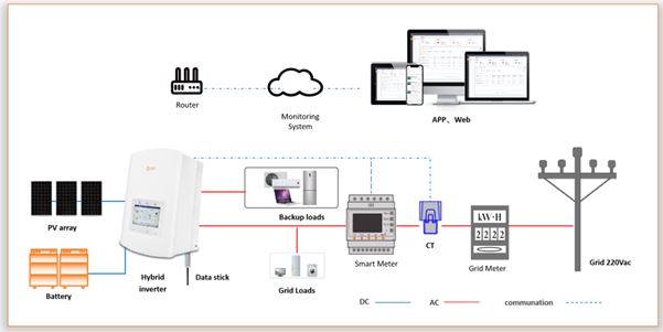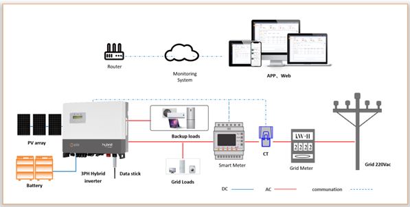 1. Use PV hybrid inverter + energy storage battery as power supply system.