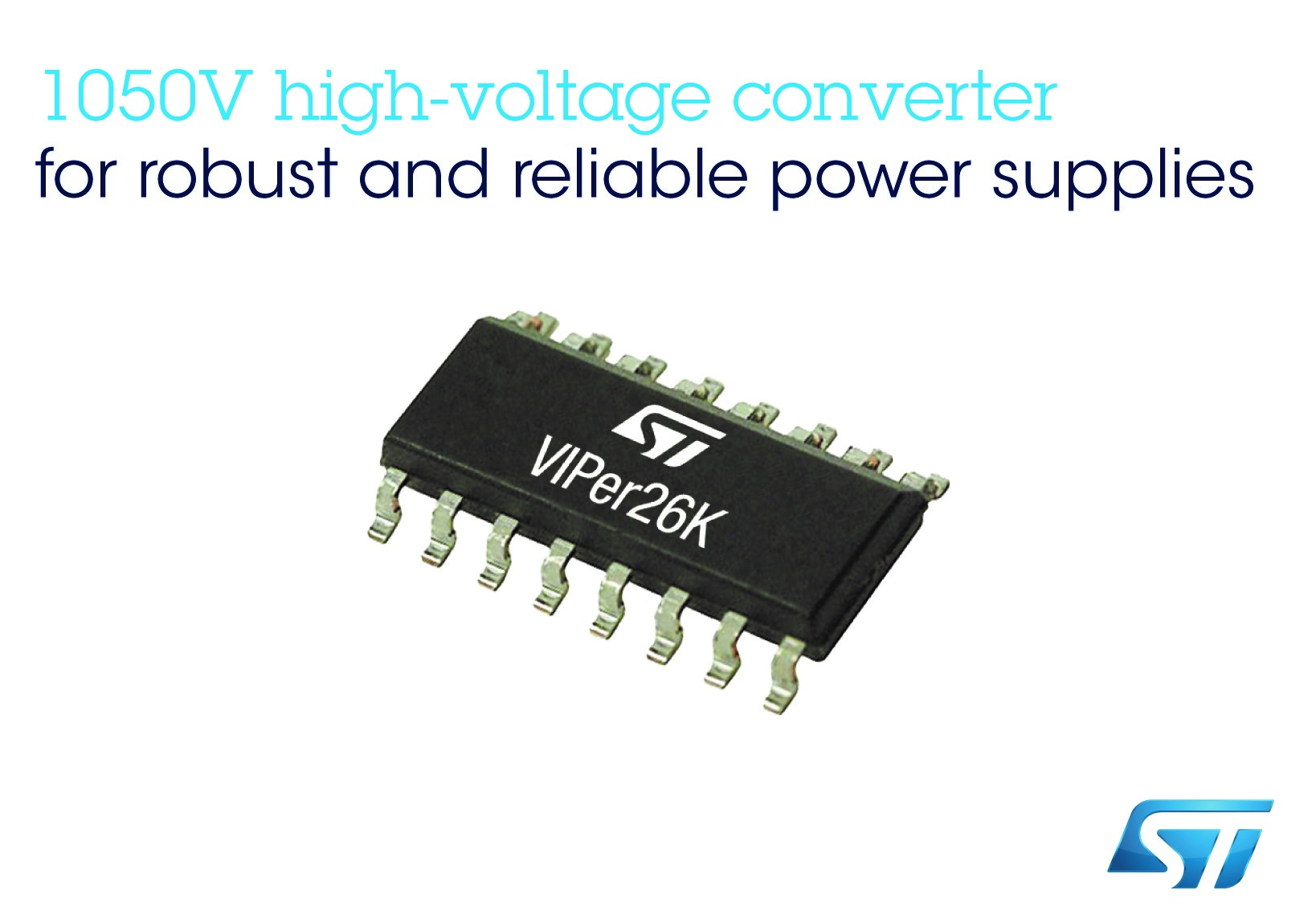 STMicroelectronics VIPer Converter Comes with MOSFET Breakdown Voltage, 1050V