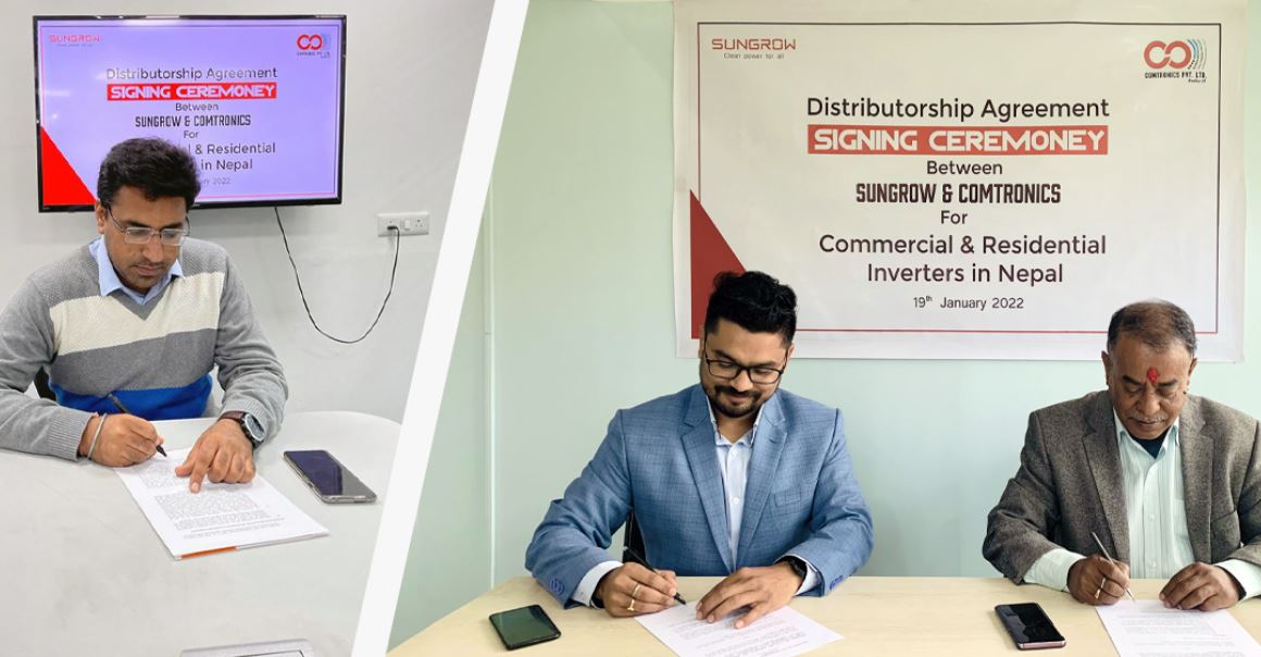 Sungrow, the global leading inverter supplier for renewables, signed a new distribution agreement with Comtronics Pvt. Ltd., a Nepalese company aiming to develop and satisfy multi-disciplinary clients’ technical needs in Renewable Energy field.