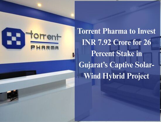 Torrent Pharmaceuticals will invest INR 7.92 crore for a 26 percent stake in Torrent Urja 27 Pvt. Ltd., developing a captive solar-wind hybrid project in Gujarat to enhance renewable energy usage.