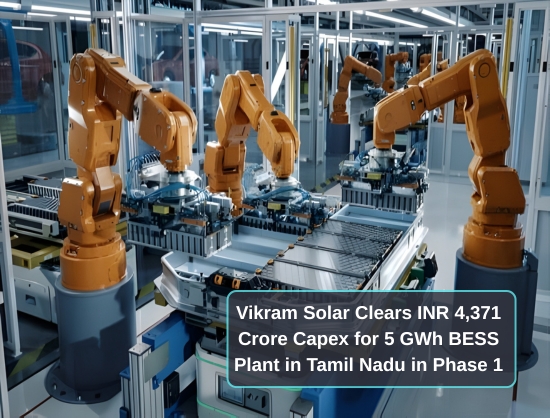 Vikram Solar has approved a capital expenditure of about INR 4,371 crore to set up a 5 GWh battery energy storage system (BESS) manufacturing facility in Tamil Nadu, through its subsidiary VSL Powerhive, as part of its phased BESS expansion strategy.