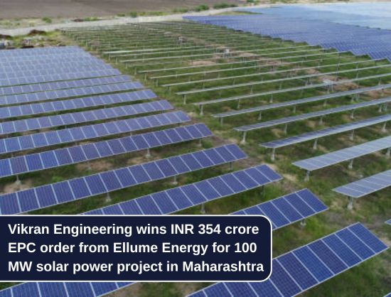 Vikran Engineering has secured an INR 354.21 crore order from Ellume Energy MH SolarOne to develop a 100 MW AC/120 MW DC grid-interactive solar power project in Maharashtra on a turnkey EPC basis.