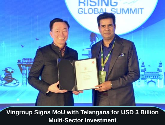 Vingroup has signed a Memorandum of Understanding (M0U) with the Government of Telangana at the 'Telangana Rising Global Summit' for a proposed USD 3 billion phased investment to build a large-scale, multi-sector ecosystem.