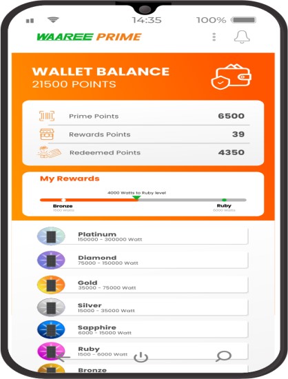 On becoming a member of Waaree Prime, the members can collect and add points by scanning QR codes on every module purchased.