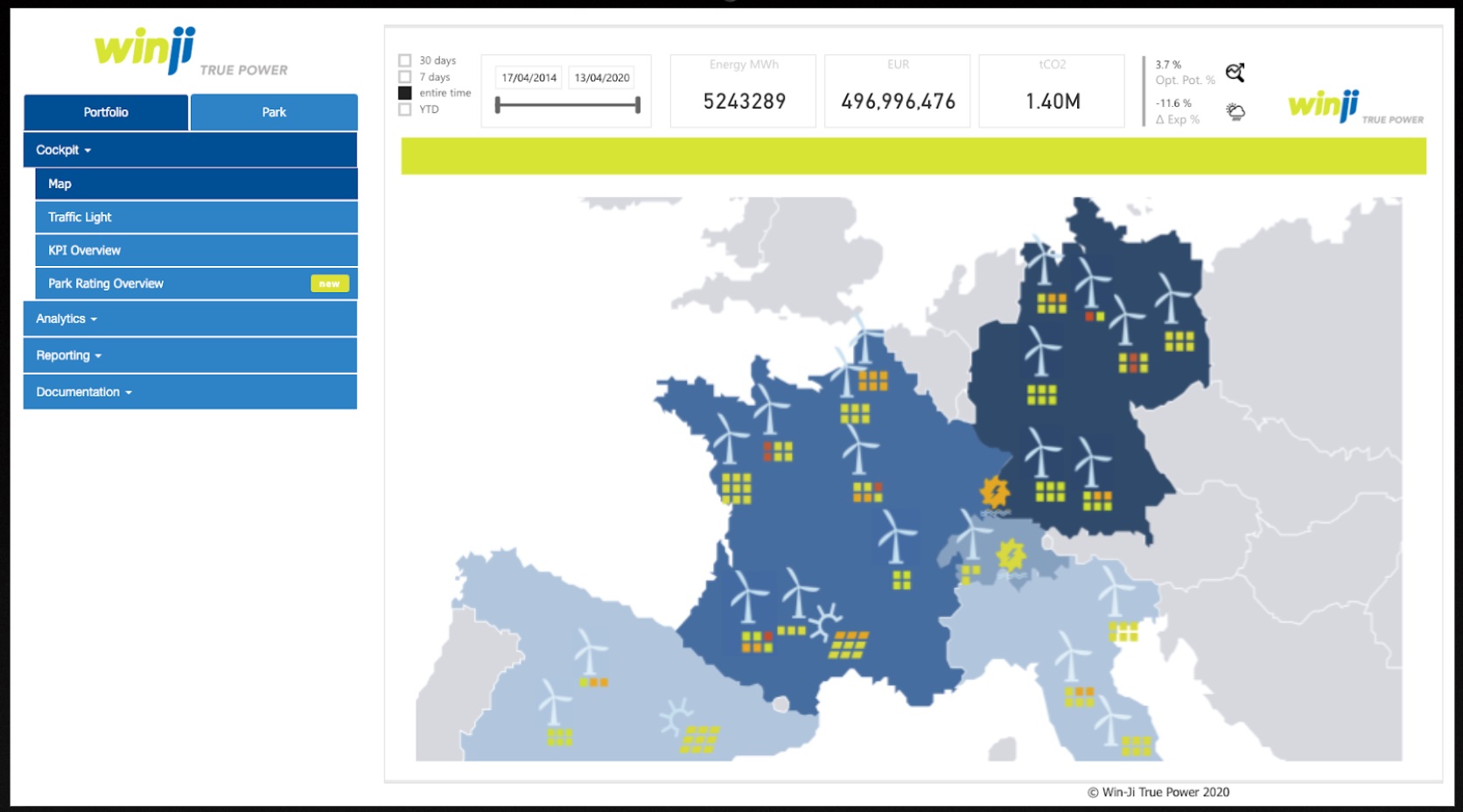 “Our Artificial Intelligence solution can significantly improve production and overall asset profitability. It allows for an automated, manufacturer-agnostic onboarding in less than a day and requires no hardware. It offers real time, fine granular park and portfolio reports, and delivers actionable measures to operators and asset managers to improve performance.”, said Bernhard Brodbeck, Founder & CEO of WinJi.