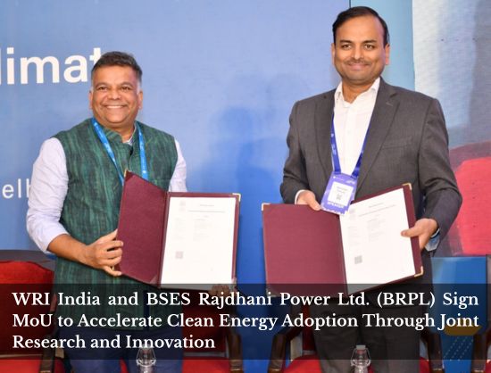 WRI India and BSES Rajdhani Power Ltd. (BRPL) have signed an MoU to drive clean energy adoption through joint research, innovation, and people-centric solutions.