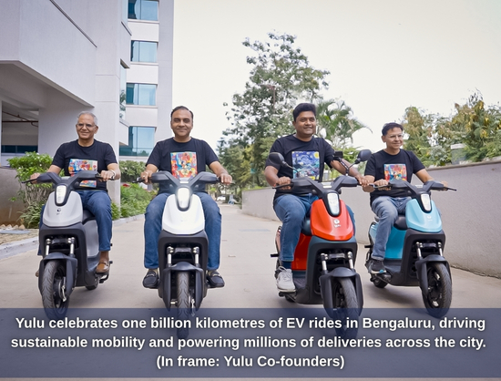 Bengaluru-born Yulu has announced that its shared Electric Vehicles (EVs) have surpassed one billion kilometres of rides in the city. With 22,500 EVs on road, Yulu remains Bengaluru’s leading short-distance mobility platform for deliveries, commutes and leisure rides. Further illustrating its scale and impact, the company revealed that it has powered 190 million doorstep deliveries in the city and eliminated 27 million kilogrammes of CO2 emissions through its EV-sharing platform that makes mobility technology-enabled, accessible, seamless and affordable for millions of users.