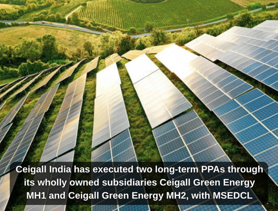 Ceigall India has taken a step in strengthening its renewable energy portfolio by executing two long-term Power Purchase Agreements through its wholly owned subsidiaries, Ceigall Green Energy MH1 and Ceigall Green Energy MH2, with Maharashtra State Electricity Distribution Co.