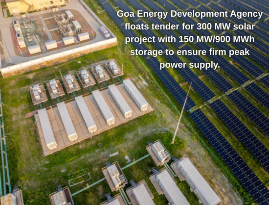 Goa Energy Development Agency has issued a tender for the development of 300 MW STU-connected solar projects with 150 MW/900 MWh energy storage systems in Goa. Bid submission ends on March 6, 2026.